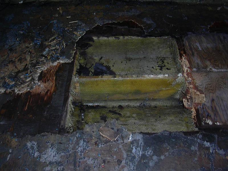 Let the gutting begin! The floor is completely rotted and the foam flotation is saturated. Ended up taking out about 400 lbs. of wet foam.