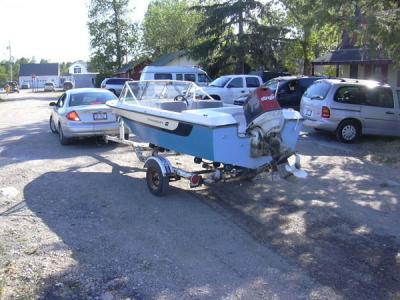 And we're ready to get her wet! The motor is a 1980 Johnson Stinger 75 (with a 1976 hood) that came off the previous A15. I rebuilt it in 1995 for yet another boat I had at the time...
