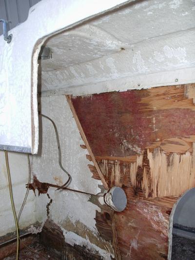 With a break in the weather have decided to get back to work on this project. I need to rebuild the transom to accept the Volvo outdrive. Need to remove one layer of 3/4" plywood.