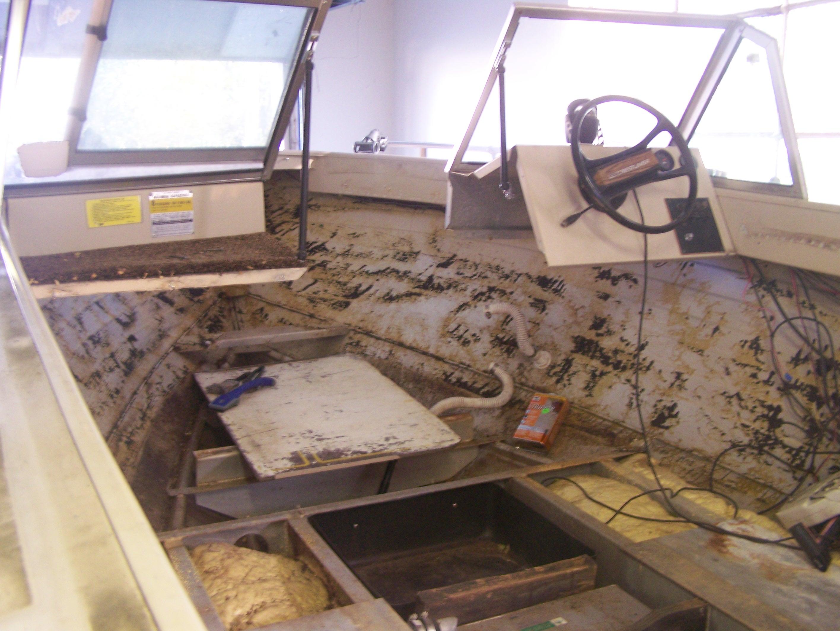 Guess I will start in the bow and work my way back stripping old glue and carpet backing.