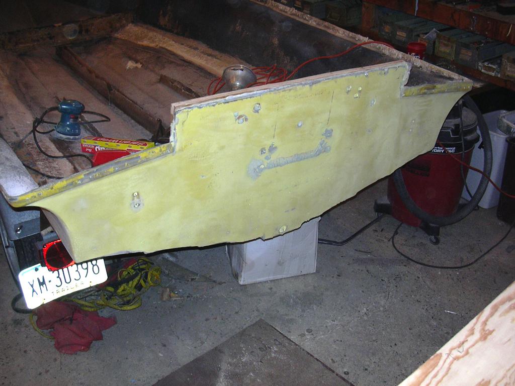 December 30: Spent some time sanding the outer skin to remove the excess epoxy goo. The cracked area faired out nicely. It still needs a bit of touch-up to take care of the screw holes, etc., but it's looking much better.