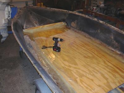 April 27, 2008: Installed the kick-board. Epoxied and glassed in place with cloth and mat.