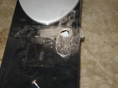 The hole saw wobbled and made a bit of a mess. Good thing the tape was there.