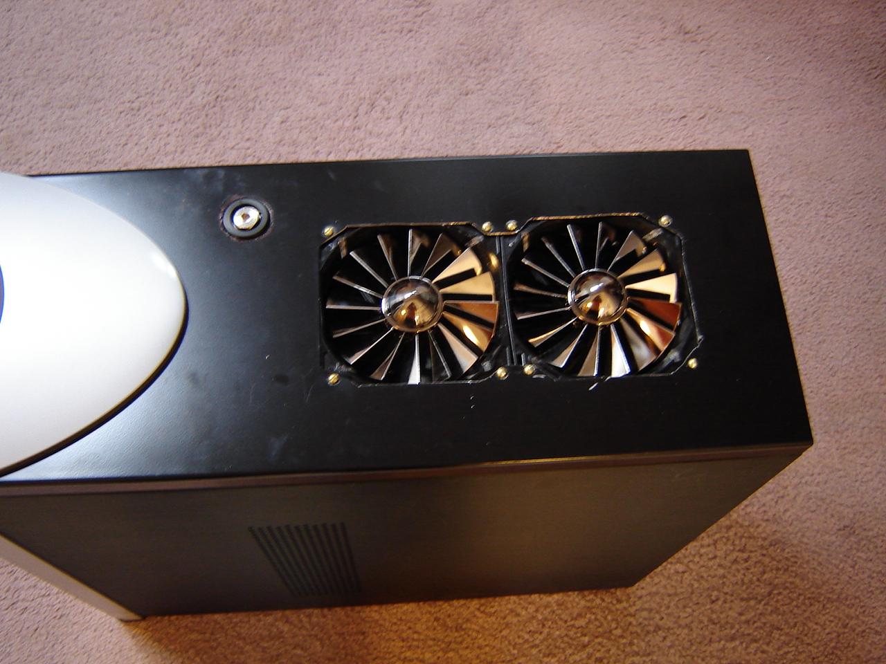 There it is the fans installed the radiator installed below and the filler neck installed.