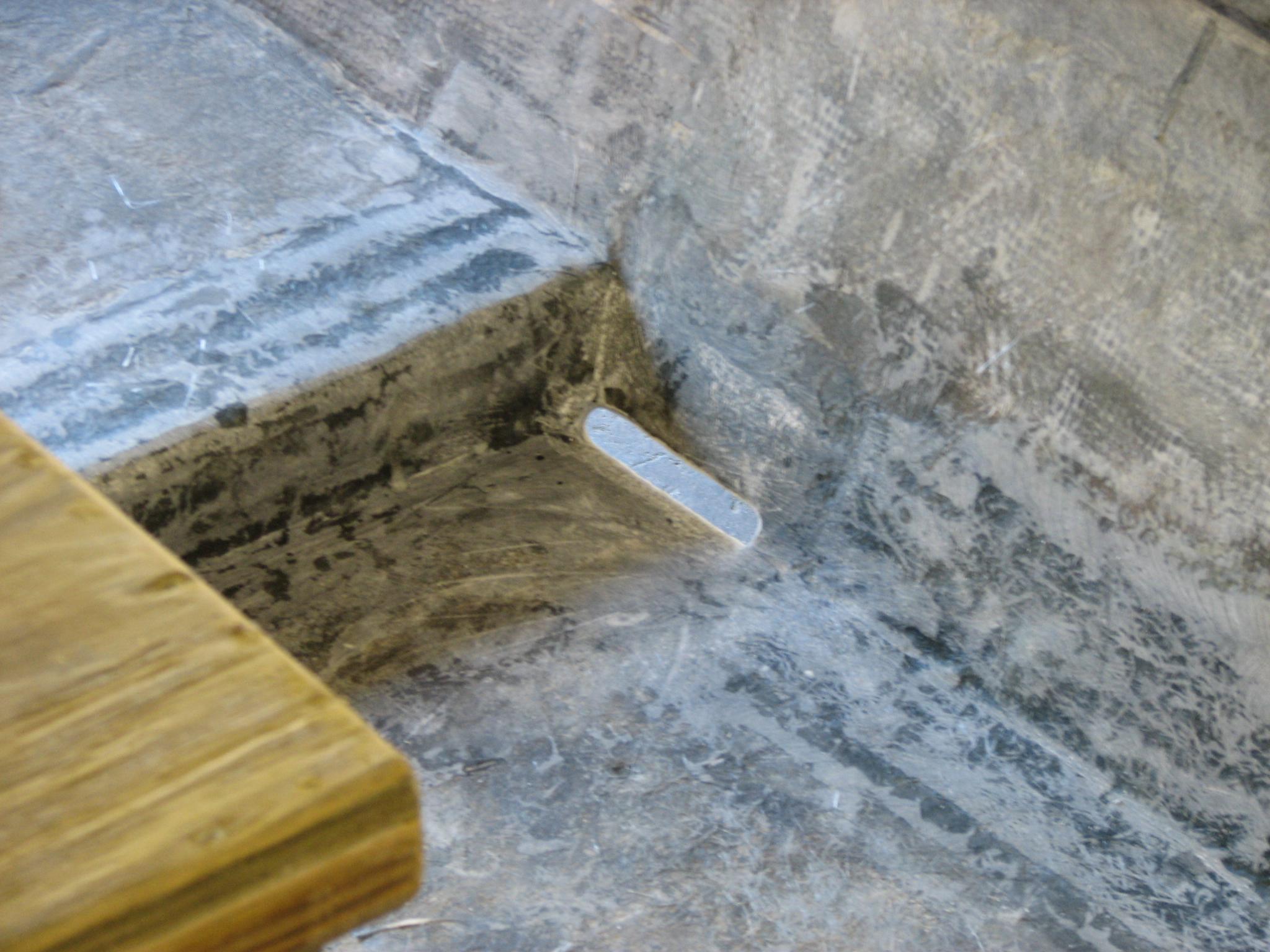 These openings on either side of the hull allows water to self-bail from the front deck. The 2" step up to the rear deck helps keep you from standing in water all the time. The rear deck drains thru two 1 1/4" holes in the transom.