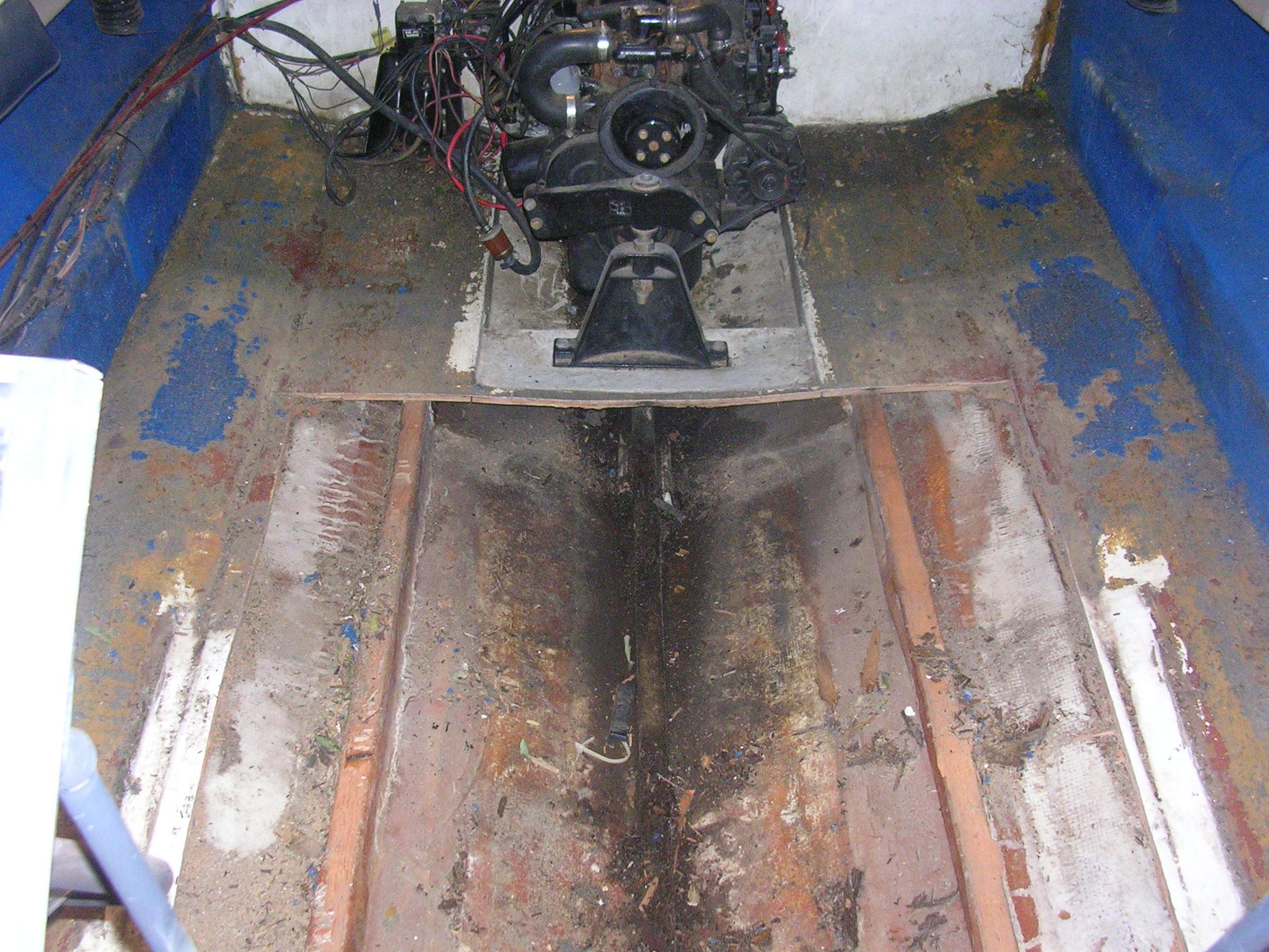 Still have to cut out wood and fiberglass under front motor mount. It has a lot of flex when the engine is cranking.
