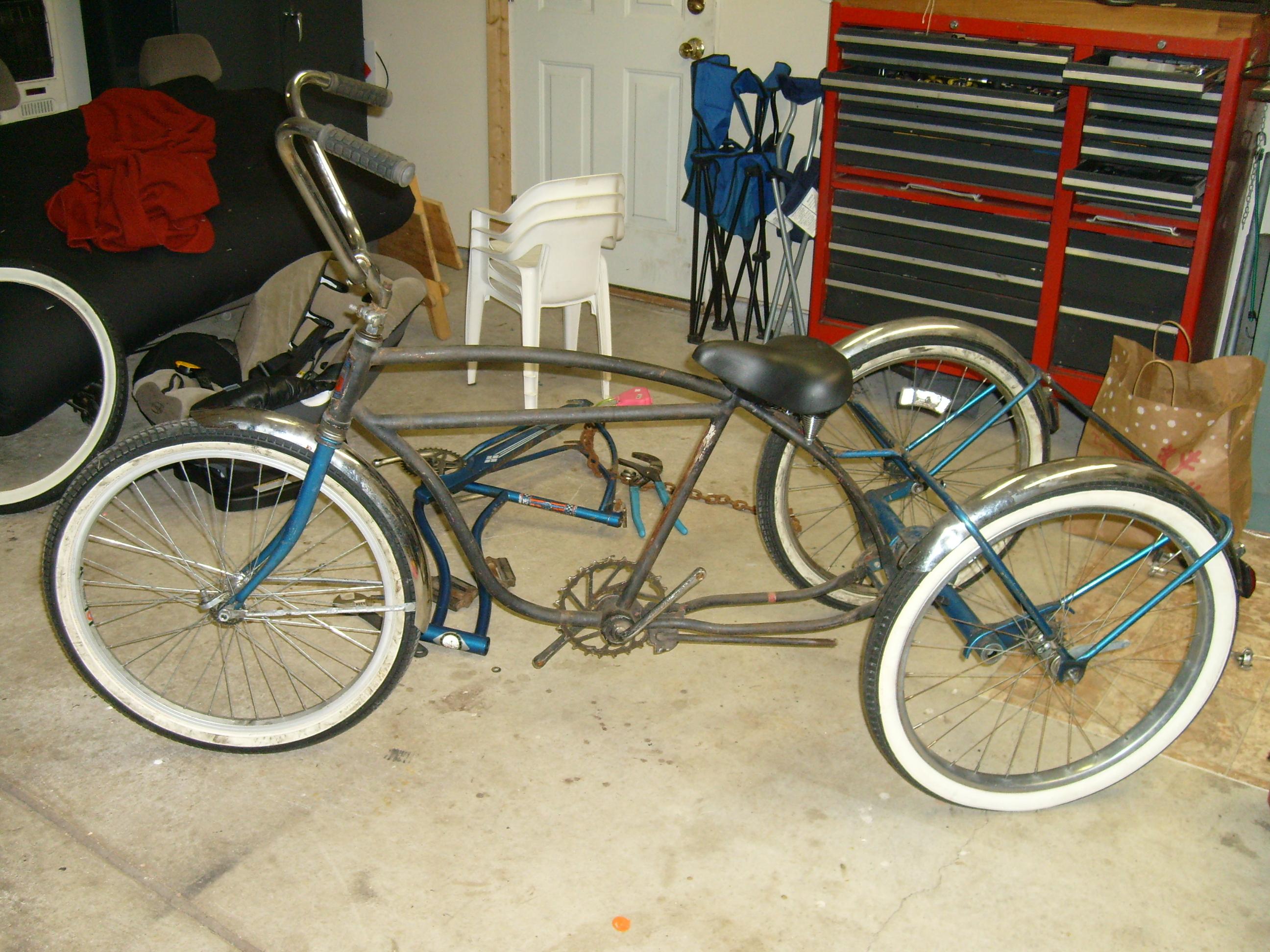Here is the quick mock up with the frame and tires I got from a guy on Criagslist. $40. I cut off the toolbox too.