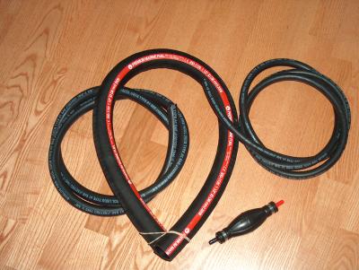 These are the hoses needed to complete the project. A 1-1/2" fill, 5/8" vent, and 5/16" fuel line. Also need a 5/16" primer bulb with stainless steel check valves and stainless banding to prime the motor.