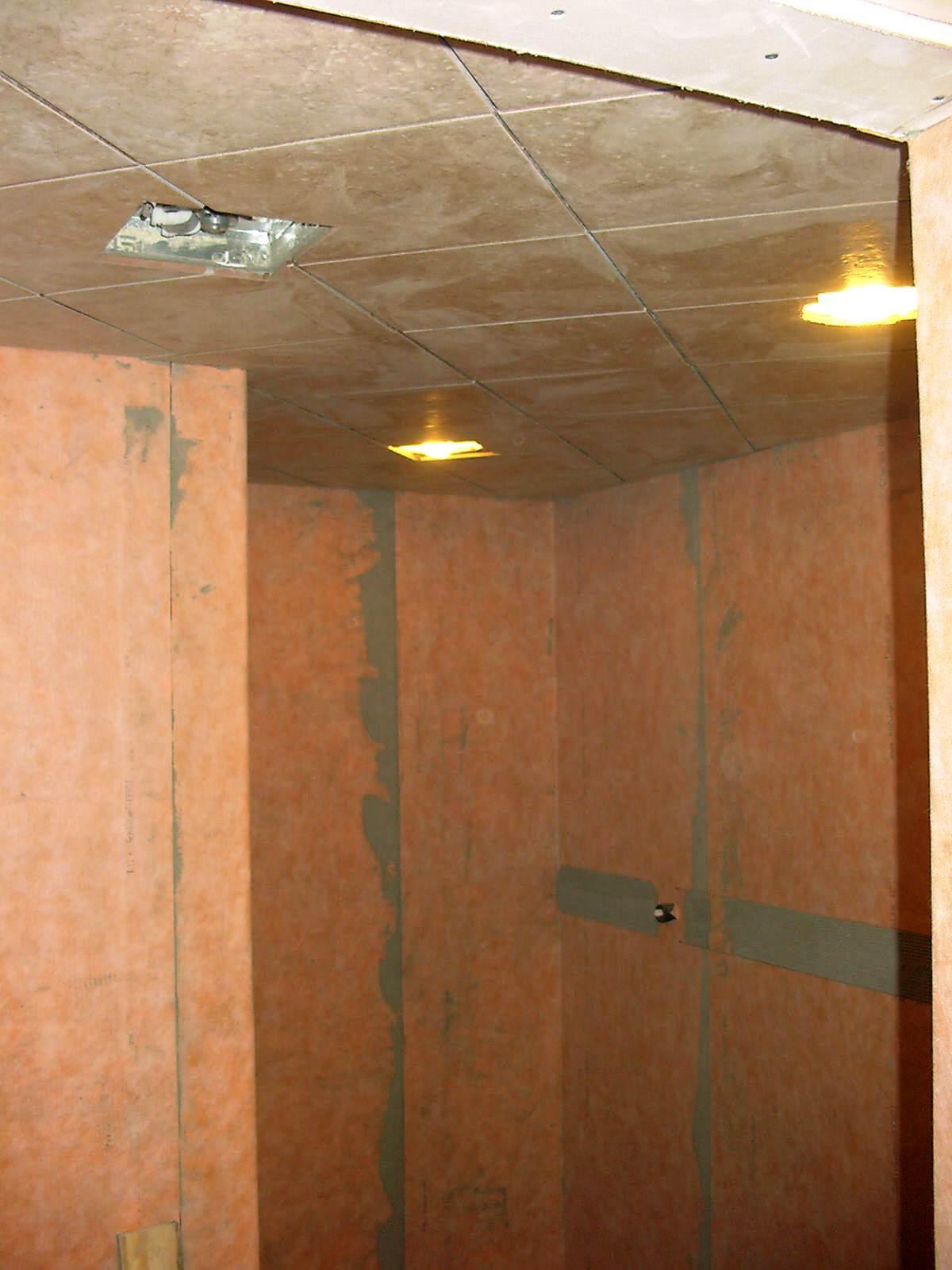You're probably wondering, you just drywalled this and now you're already setting tile? What about floating the floor, etc? In the case of ceiling gravity is NOT GOOD. Its called raining thin set, and its MUCH easier to clean that off of the subfloor than off of the floated floor.