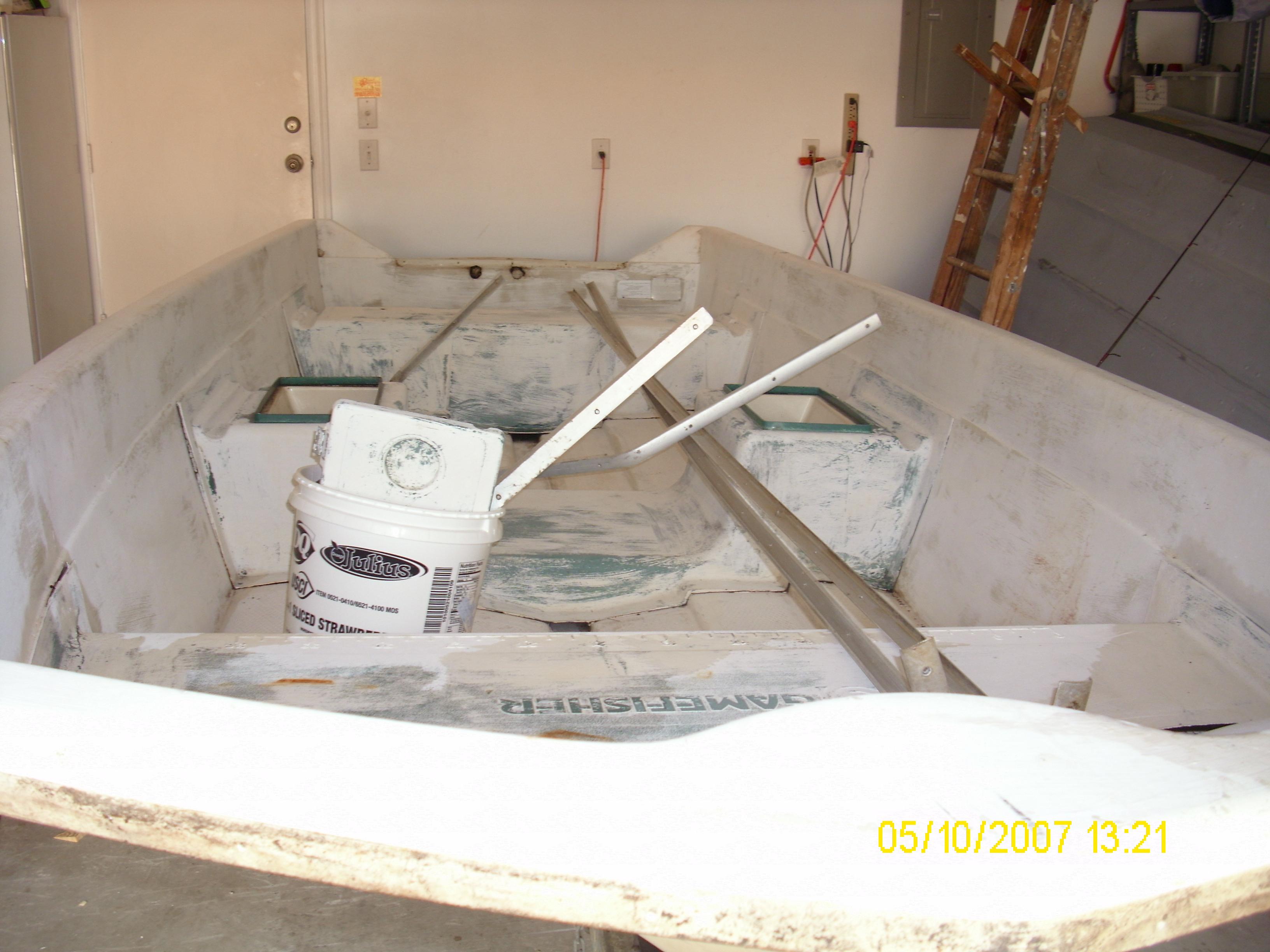 Before sanding I had to pull all of the trim off as well as all the hatches and hinges.