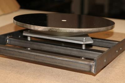 Side view of completed (but unpainted) mirror cell with 12.5" f/6 Royce conical primary mirror installed. This combination tailgate/cell is currently a candidate for production and may be available to order from Optical Supports