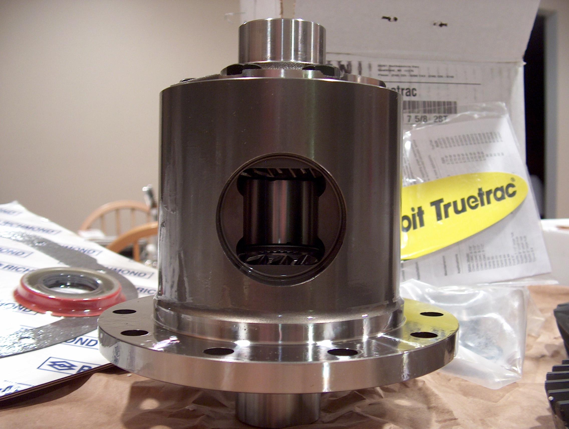 This is the Eaton Detroit Truetrac Limited Slip Differential (LSD). Unlike other LSD's that use clutches to lock the two axles together, the Eaton uses an all gear drive design to perform the same function. In addition to having no clutches to wear out, it operates totally smooth and silent. It will also last the life of the car without maintenance.