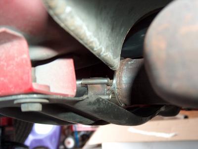 This is a tight area to work in. The cross brace cover up access to the cat to I pipe connection, and can be removed for better access if needed. I chose to work around it, and finagle the band clamp into place, same as OEM setup.
