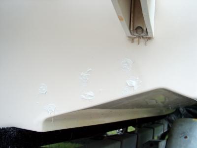 The holes were filled with a dab of 3M 4200 sealer. Very important! Water is to be kept out of the transom at all costs!