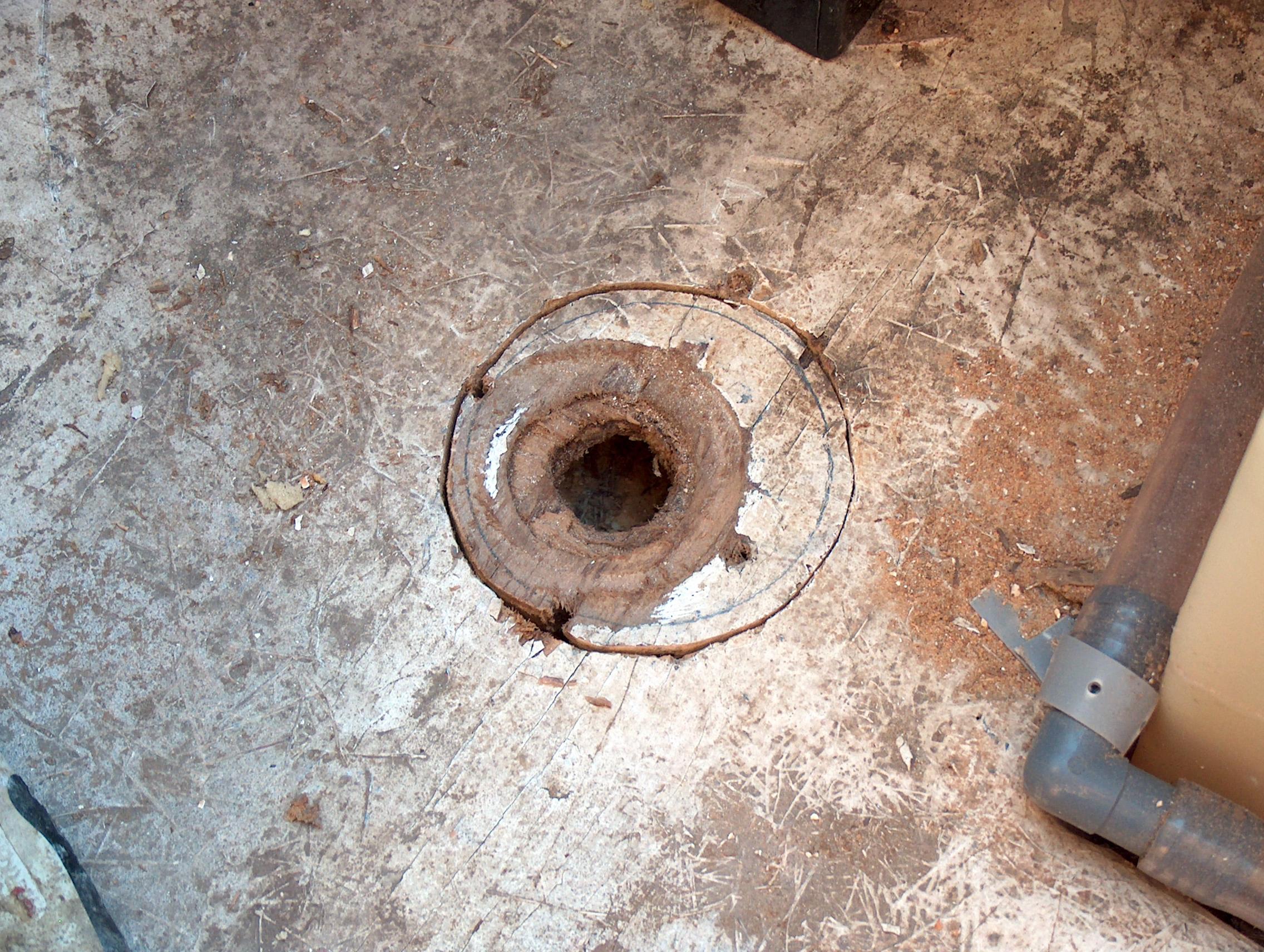 Decided rather than fill the hole with resin, to cut a larger hole and fit with an access/inspection port. Cut a 4" hole with a jig saw.