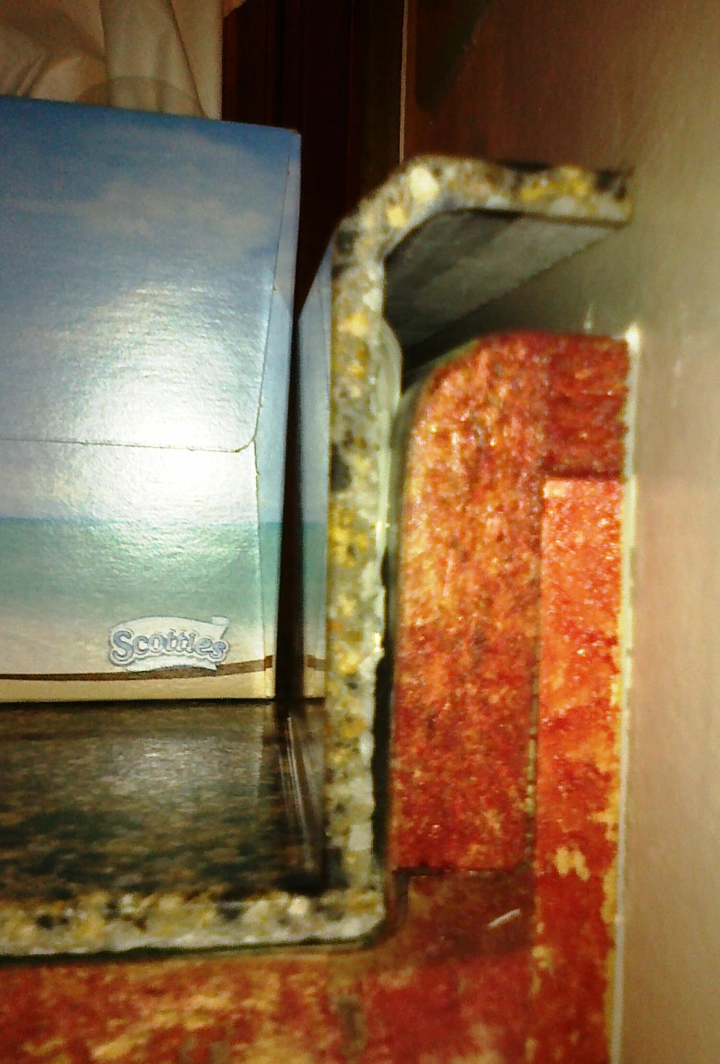 Lets examine this construction for a moment.. The GT for the counter surface is installed first and runs either just short of the original laminate's back splash or, maybe thats whys there's so much filler in the front.