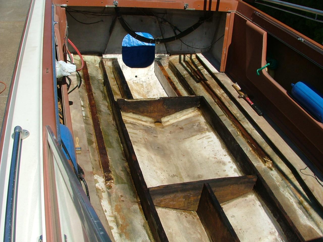 All cleaned out. No further deterioration found. The moisture that kept showing up in the gas tank bay had been coming out of the foam between the motor mount stringers. As it goes back together I will eliminate the 4.5" space between by filling in with solid epoxy treated wood.