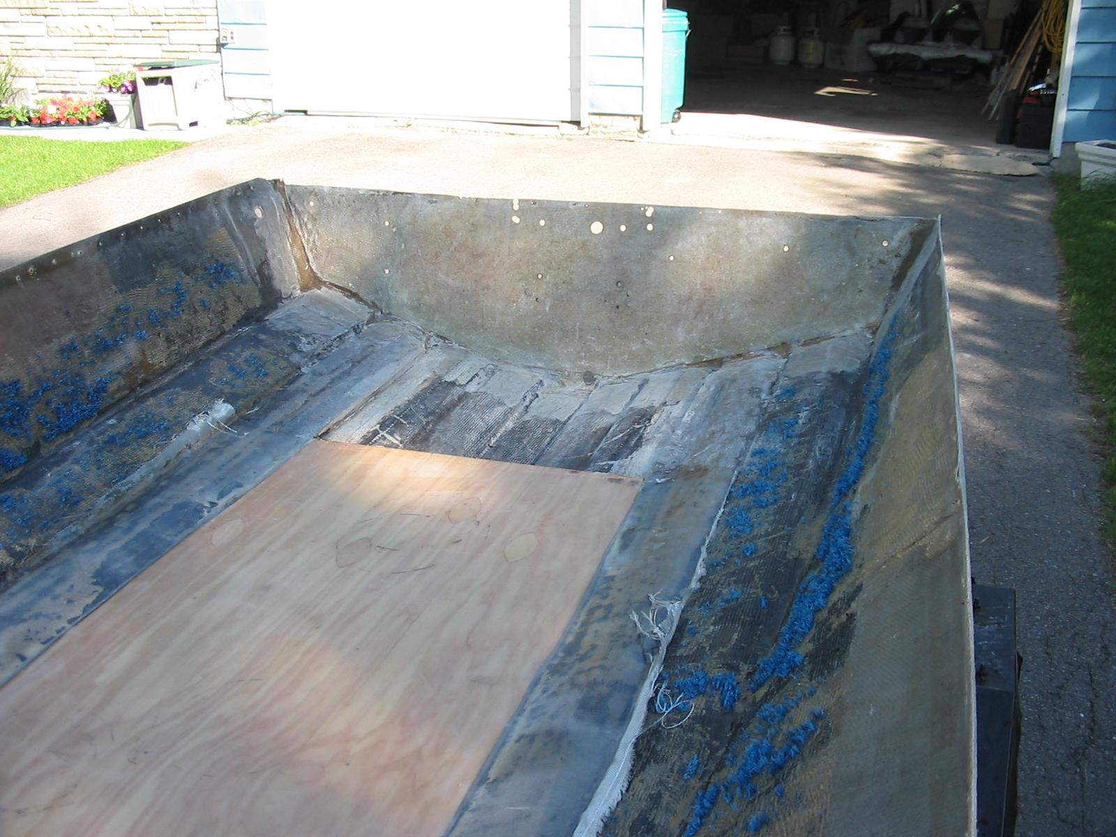 Transom wood was rotten, came out fairly easily. Front 1/4 of the floor seen above came out. Including screw holes there was about 30 holes through the transom. Previous owners did stupid things like taking the line for the spedo out by drilling a hole in the splashwell, then drilling a hole in the transom anyhow instead of going up and over the transom.