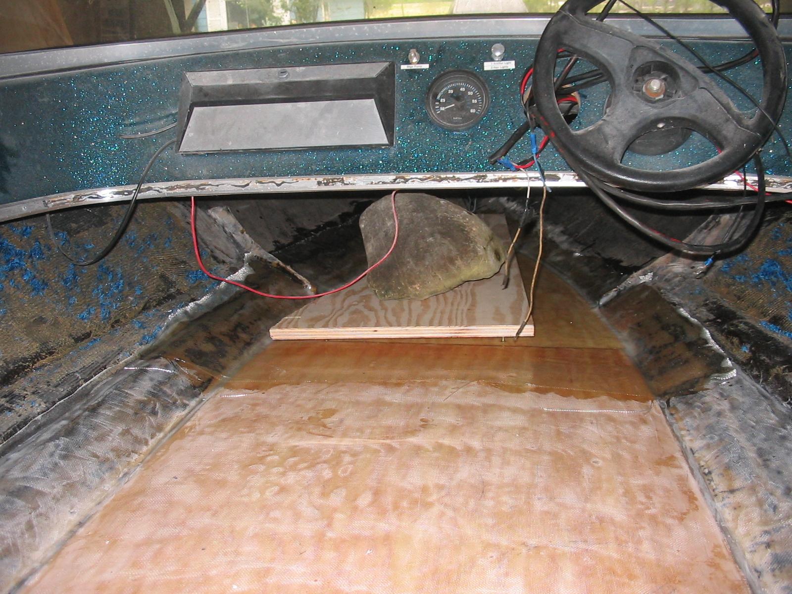 The deck was set back on while the floor cured here, just to ensure there were no problems putting it back on later and to minimize the chance of any hull deformations.