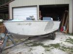 Description: This is my latest project. I've gone through about 6 boats this year. I've restored 4 of them, and either changed my mind or just thought better with the other two. There has been a small Mark Twain runabout, a 21' Reinell cuddy cabin, and that last 2 have been 12' aluminum boats I just haven't been able to find one that I finished and had really fallen in love with. As a result, I still don't have one that I call my own. Each of the others has been sold, usually for a profit. The Reinell runs and is up for sale already. I love the aluminum boats, though. I've found them so much easier to deal with than fiberglass, and I like the utilitarian advantages of aluminum over glass. I believe that I'll do more fiberglass work, possibly before the year is out, but for now, my heart is set on aluminum. This is my new toy, and I will continue to update pictures as I work through the project. The best thing about this boat is the great deal of room that the open bow and wide beam presents. More than any other, I'm wondering now if this is the one.