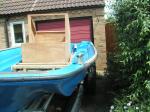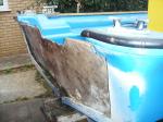 I have just purchased this hull as an unfinished project. It was built by a company called RTK Marine, a british company who have been supplying many specialist craft of this type to the british armed forces since 1972. The loa is 17ft 6" and beam is 7ft 3". The hull takes a long shaft motor. The usual motor would normally be 140hp (either johnson or suzuki) but, the larger 6.3 metre model will take twin 140's. This i'm told produces speeds of between 40&50 knts if travelling light. With the single 140 she should get to around 30knots. I am intending to rebuild this hull over time, but to start with am gonna concentrate on the outside of the hull. Unfortunately, past owners have done poorly finished repairs so the hull looks rubbish. i can understand this to some extent as any repairs to be done frome the inside would need the deck removing, the foam between the skins digging out and then re-doing. This is gonna be a lot of trouble. The foam gives the hull most of it's rigidity and strength. I believe it is injected in at point of manufacture whilst the hull is in a jig to prevent the pressure of the expanding foam bending the hull out of shape, and I obviously do not have a jig at my disposal.