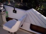 Description: When I bought my boat, all storage space under then gunnels had been cut out (if it ever had any!). Since I was tearing out and replacing the deck anyway, I decided to add custom side upholstery and gunwale storage.