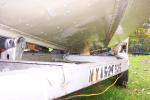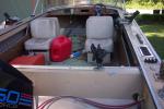 Back in August I bought a 1967 Starcraft 16' aluminum hulled boat. It came with a trailer, the 50 horsepower Force on the transom plus an additional 50 horsepower Force all for $350. The first thing I did was to replace the old lighting on the trailer with an Optronics LED kit, which for $50 is a VERY good kit that was also very easy to install. Next I set to work replacing the bearings in the hubs. Well, much to my surprise, the wheels were held on with trough bolts with nuts and washers on the back side! This wouldn't do so I decided to change both hubs. Of course I had a "unique" situation in that all three brands of hubs I tried wouln't fit properly. The outer bearing was right at the end of the spindle. So I ended up ordering two new " short hubs " from thr trailer superstore along with a set of matching rims and tires. On the motor side of things, everything was okay except for one of the plugwires had a crack in the boot. Since you can't just replace the wire (again, much to my surprise) I fixed that with several coats of liquid eclectrical tape. I also filled the lower unit with lube since a quick check revealed none. I then test ran it only to discover no water coming out the back. This led me to replacing the water pump a couple of weeks ago and installing a tell on the top of the head. I fueled up the gas can with fresh gas and oil and added an entire can of Seafoam to clean it out. I only got to run the motor a little while until this weekend. I put a half of a 55 gallon plastic drum under the lower and fill it with water to run the motor some. Let me tell you, when you hear people talk about how Seafoam causes engines to smoke alot- believe them! I thought something was wrong so I turned it off and posted a question over at the www.iboats.com forums and was told that the smoke was definately caused by the Seafoam. So after having my confidence restored, I decided to begin with the floor removal, which is where I am now. Here are some pics of my boat as received and the little bit of floor progress I've made. I'll post more as I go along.