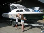 I bought this boat about 4 years ago, and have already done a lot of work to it prior to painting it. Its had a major cabin rebuild and tidy up (so the girls are happy), and has also been set up for a bit of fishing. Full rewiring, structural repairs, rod holders, poles, bait tanks, fridge, LED lighting, fresh water tanks, etc. I would really like to buy a Black Watch 26, but hey....