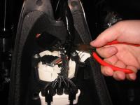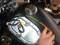 I routed these wires down through the wire chase in the top triple tree along with the wires from the hand controls. I then pulled the wires along the left side of the neck to the dash area. Make sure you leave plenty of slack so that you can turn the handle bars from lock to lock without stressing these wires.