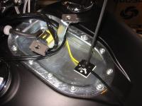 I used an adhesive backed mounting pad to zip tie the signal wire in the lower part of the dash area. This makes it easier to keep that single wire running down the center of the tank.
