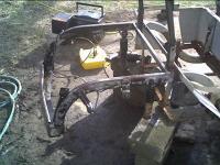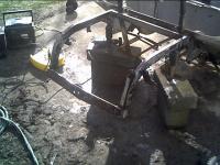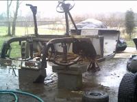 Front suspension stripped. Frame had more concreate on it than rust.