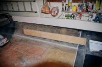 On the left is a cardboard template of the shape of the hull; on the right is a template of the actual shape of the gas tank. Close in shape but work is needed to modify the compartment to suit the shape of the tank.