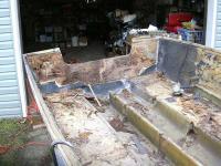 Let the gutting begin! The floor is completely rotted and the foam flotation is saturated. Ended up taking out about 400 lbs. of wet foam.