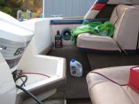 This photo shows how the fuel lines enter and exit the filter, then pass through the boot out to the splashwell and outboard.