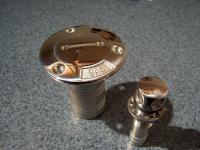These two parts are very high quality. Beautifully polished, heavy castings, and the gas cap comes with a stainless safety chain. A nice feature to have when dropping the cap means it goes to the bottom of the bay.