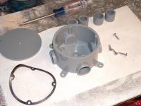 Here is what came with the PVC box when I opened it. More screws, some plugs, and a rubber gasket for the top. All I need is the top inch or so of the box to make the deck plate.