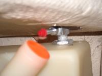 The deck plate is screwed on from below. The splashwell is curved in this area, so the deck plate had to be sanded with a small disk sander until it fit the contour of the splashwell.