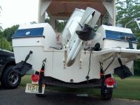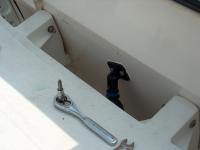 The holes were filled with a dab of 3M 4200 sealer. Very important! Water is to be kept out of the transom at all costs!