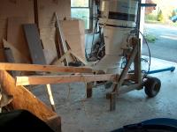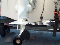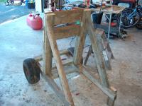 The outboard stand is now very heavy, as the motor weighs almost 280 lbs. A coupld of 2x4's tied on allows me to move the stand around like a rickshaw.