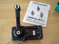 This is the Uflex control with Tilt/Trim and Warm Up features. It has a heavy cast aluminum lever and very thick steel frame with a few composite pieces around the lever. It looks and feels much better than I thought. Had to read the instructions over and over to determine which configuration to use for the Johnson (push throttle, pull forward gear) because Uflex is an Italian company, and the translation was so-so.