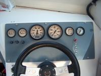 The Johnson uses the System Check system to monitor the motor, so I chose a new set of gauges that support System Check and the special connectors on the wire harness. The gauges are Fuel, Volts, Tach, Speedo, Trim and (not shown) Water Pressure.