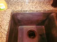 Another closer shot of the sink installation. If this were a slab counter or a corian counter that square corner would not be there, it would follow the contours of the sink and the two would look much more like they blend together..