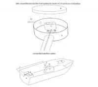 This 1960`s image shows the Remote Fuel System fitted in a boat with motor fitted mid-ships,under the seats and table.The carburetor and fuel pump is fitted in the closet at the left of the seats, crankcase is vented to carburetor and the fuel tank is fitted in the covered outboard well which is drained and vented overboard.There are no accessories of any sort to do with the fuel system inside the hull of the boat.The boat has a Pivotal Drive Propulsion fitted which can be lowered down 20 degrees or lifted up level with the keel for shallow water work or run as a surface drive propulsion as in the picture.This boat can have the motor fitted mid-ships or in the covered outboard well and a fuel cell for the fuel drained and vented overboard.There are few places this boat can not go.